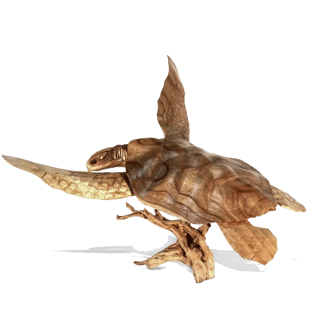 This large Hand-Carved Sea Turtle sculpture is expertly crafted from rich Jempinis wood, showcasing smooth curves, intricate detail, and natural wood grain for a stunning decorative accent. The handcrafted design highlights the beauty of sustainable hardwood, making this piece a timeless addition to coastal, tropical, or nature-inspired interiors. Perfect for tabletops or as a thoughtful gift for ocean lovers and art collectors.