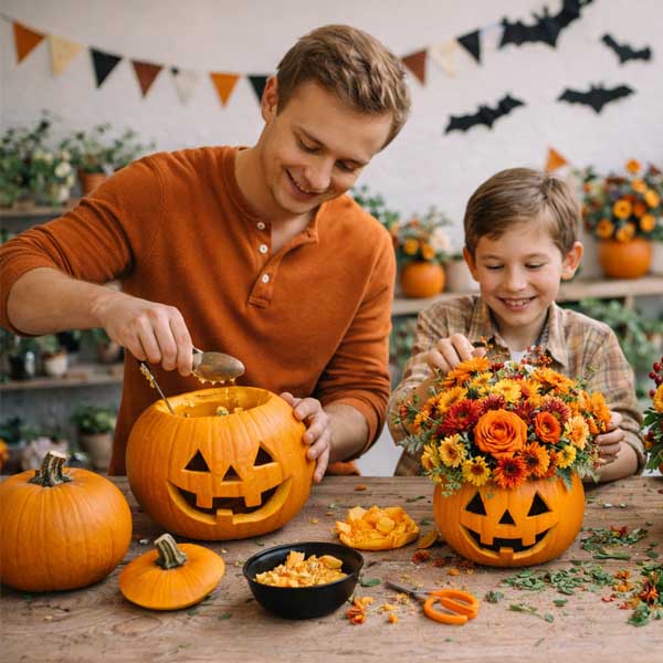 You’ll leave with a festive Jack O’Lantern floral centerpiece that’s equal parts fun, creative, and beautifully seasonal.