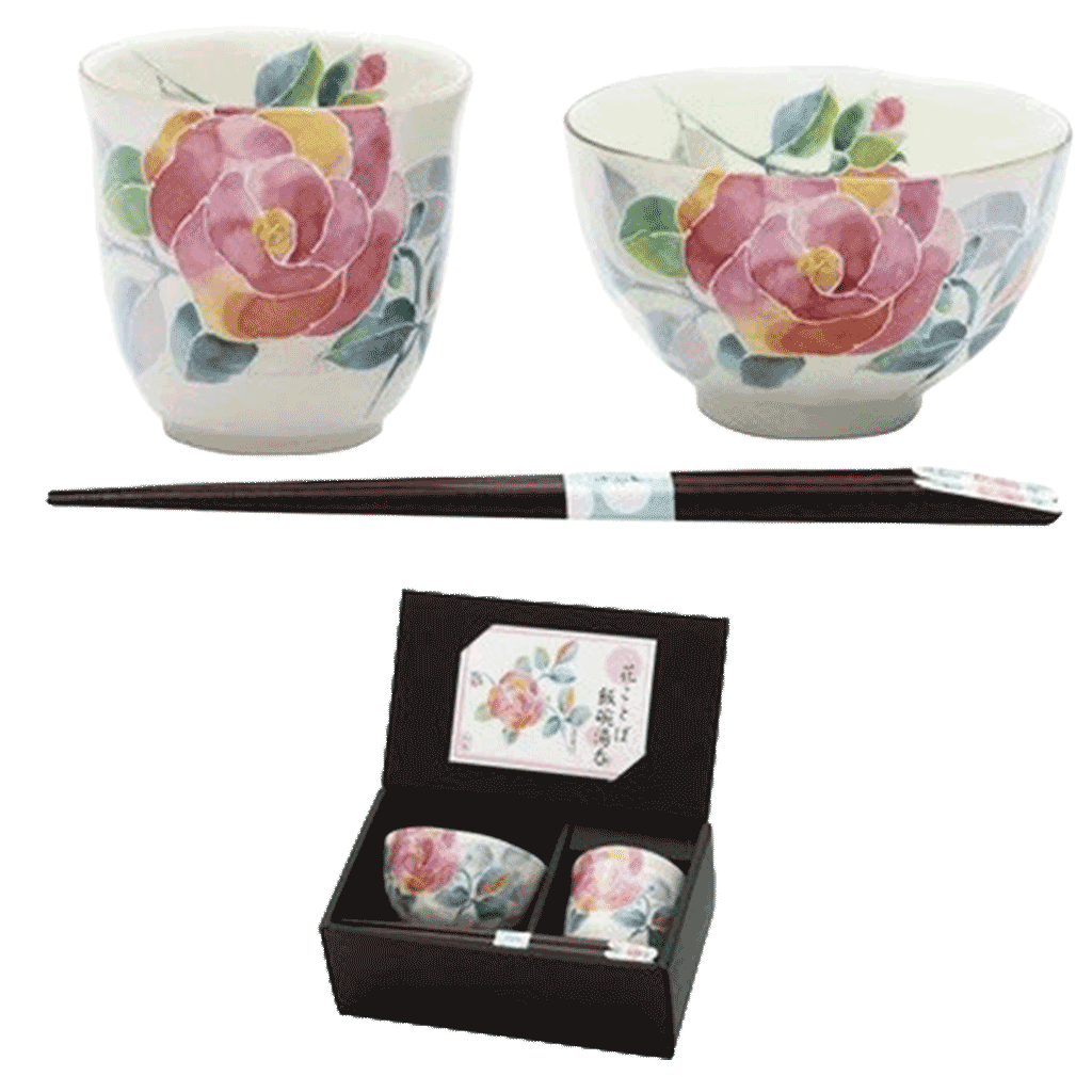 Japanese Floral Tea & Rice Bowl Set – Rose